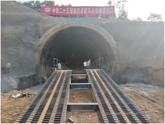 3、栈桥上方空间开阔,方便各种施工车辆的通行,混凝土罐车可方便的在栈桥两侧倾倒混凝土,挖掘机也可以无障碍的在栈桥上进行回转,便于清理仰拱余渣。
