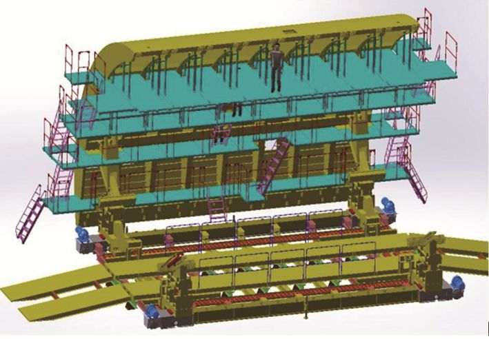 4)衬砌台车作业平台优化。主要优化措施为增大爬梯安装角度、爬梯宽度和平台有宽度,使施工作业更加便利。智能衬砌台车作业平台优化图如图11所示。