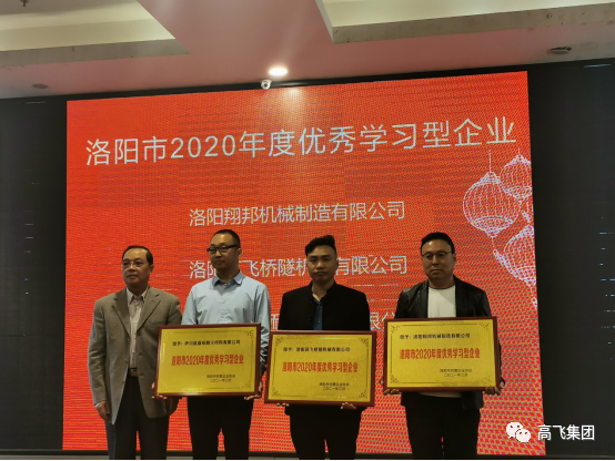 再次祝贺洛阳市民营企业协会2020年度工作会暨表彰大会圆满成功!祝贺高飞桥隧机械有限公司获得“洛阳市2020年度youxiu学习型企业”荣誉称号!