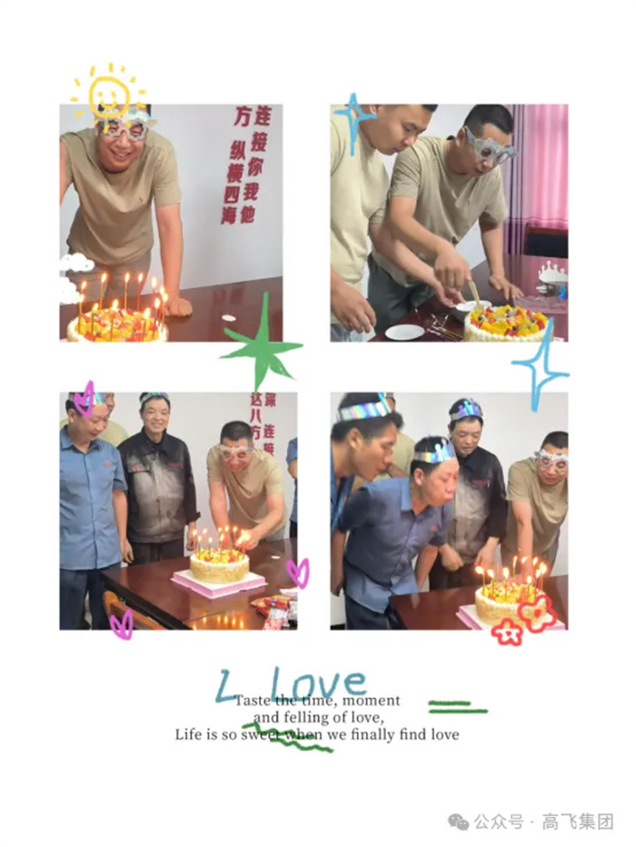 生日会现场,我们有“逢7过”、“天气预报”等趣味小游戏,有惊喜、有笑料、有互动、有情谊,充分展现了高飞股份员工们的活力风采。